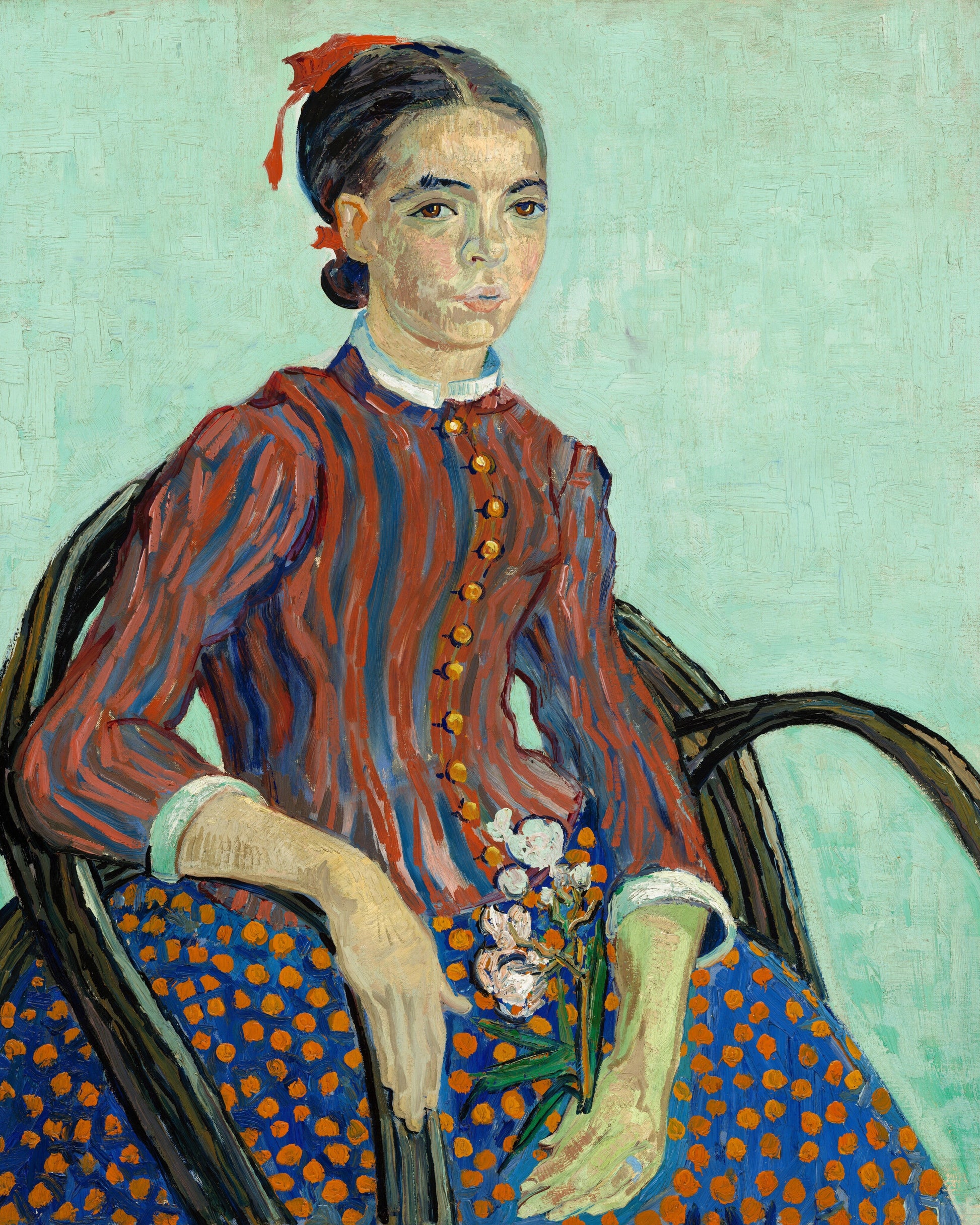 “La Mousmé” by Vincent van Gogh is an 1888 oil on canvas portrait depicting a young Provençal girl in traditional attire. The work showcases Van Gogh’s vibrant color palette, expressive brushwork, and attention to character, reflecting his Post-Impressionist approach that emphasizes emotional intensity and personal vision over strict realism.