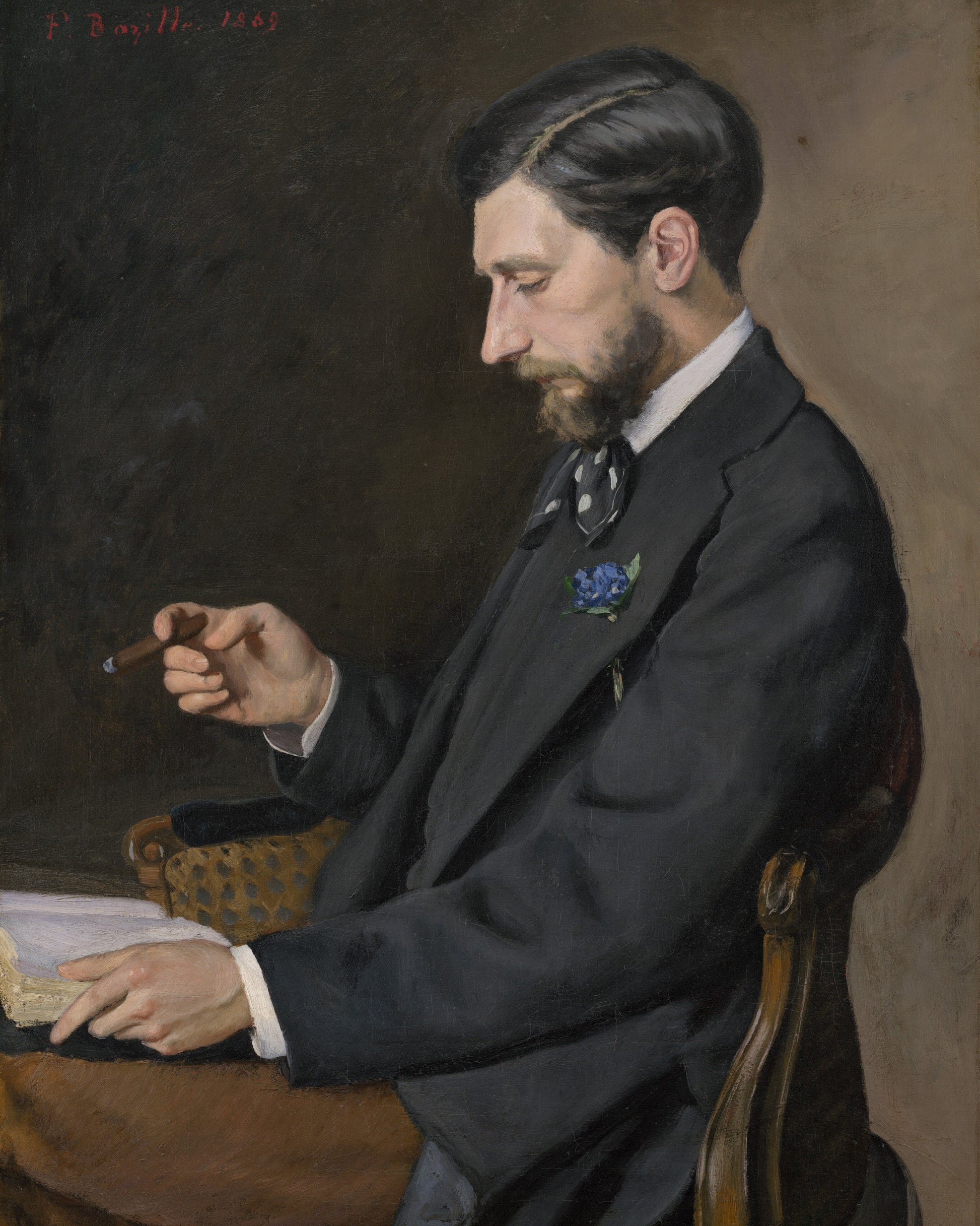 “Edmond Maitr, 1869” by Paul Cézanne is a late-19th-century portrait painted in oil on canvas, depicting the sitter with simplified forms, subtle shading, and a measured composition. The work exemplifies Cézanne’s exploration of geometric structure, color modulation, and spatial harmony, reflecting his Post-Impressionist approach that emphasizes the formal and compositional essence of the subject rather than strict naturalistic likeness.