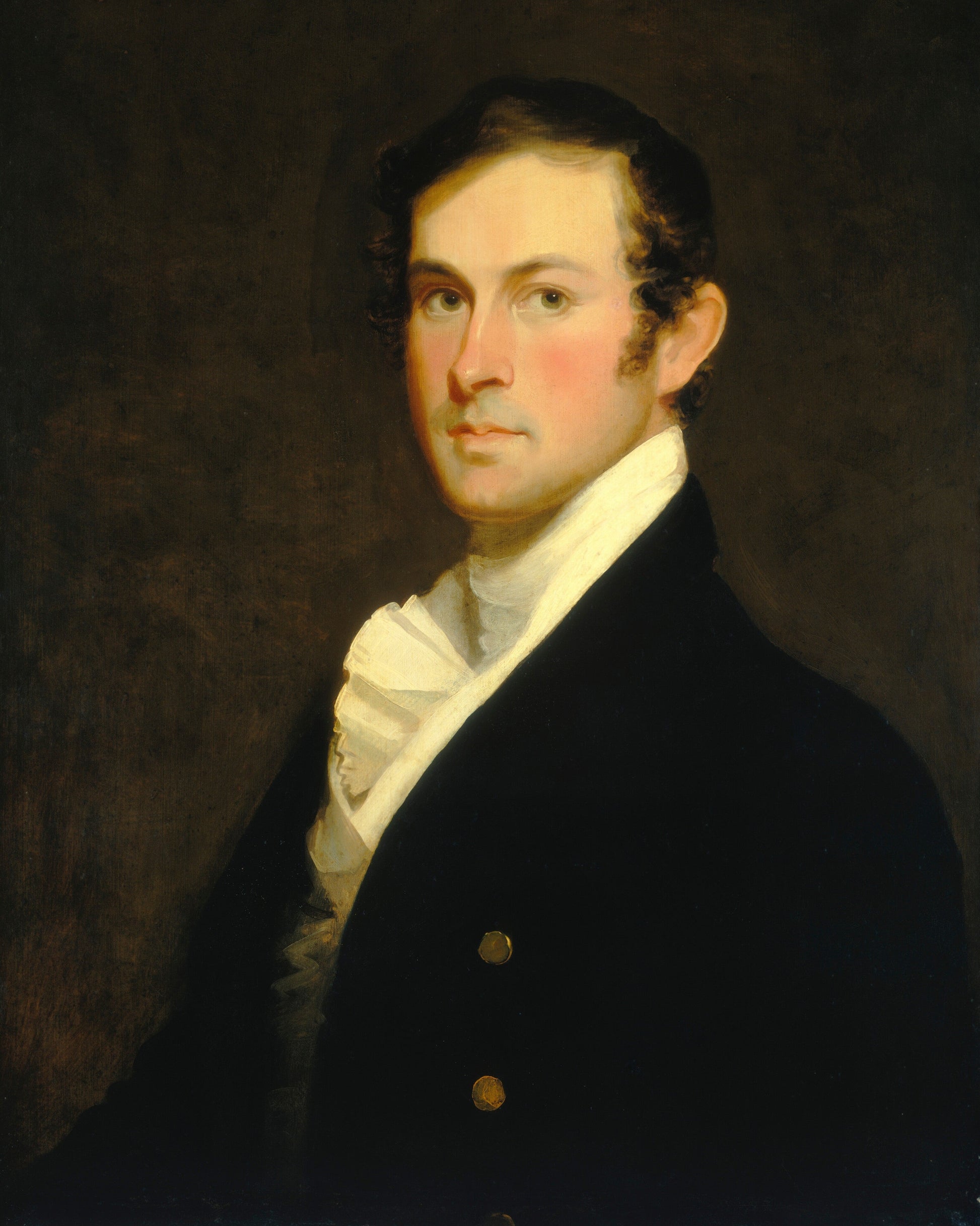 “Augustus Fielding Hawkins” by Matthew Harris Jouett is an early-19th-century portrait painted in oil on canvas, depicting the sitter with dignified posture and refined attire. The work exemplifies Jouett’s attention to facial expression, detail, and compositional balance, reflecting his focus on capturing both the likeness and character of his subject rather than idealised or dramatic presentation.